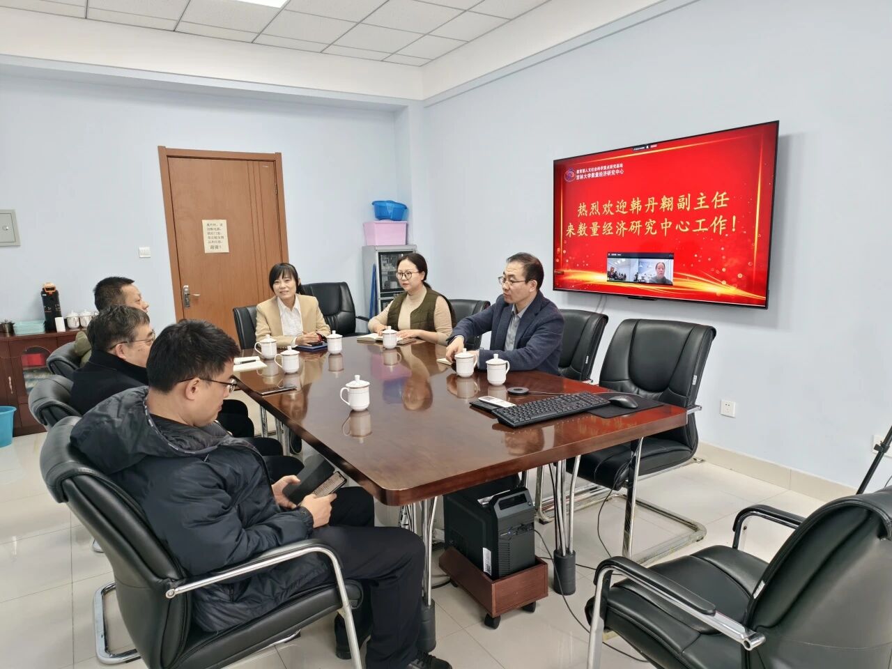 与会人员纷纷对韩丹翱副主任的到来表示热烈欢迎,并一致表示未来将在孙巍主任的带领下,紧紧围绕中心的长远发展目标,立足本职岗位,精诚协作,以更加饱满的热情和务实的作风,争取开创中心科研、管理与社会服务等各项工作的崭新局面,为将中心建设成为国内领先、国际有重要影响力的数量经济学研究高地贡献智慧和力量。